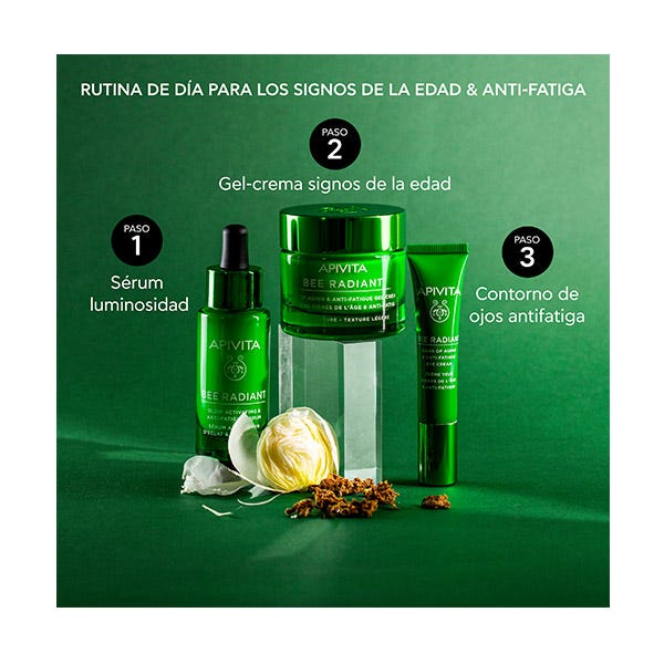 Aplicar mañana y noche antes de la crema Apivita sobre la piel limpia evitando la zona del contorno de los ojos.
