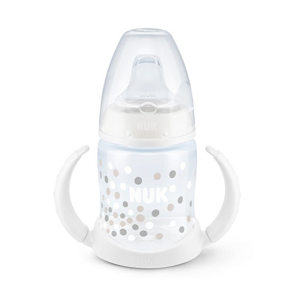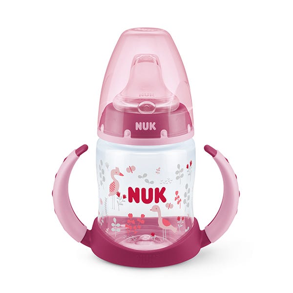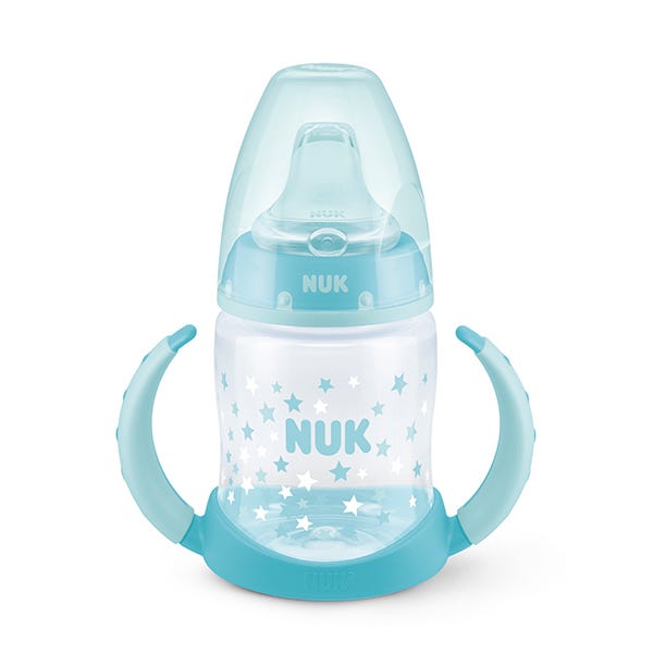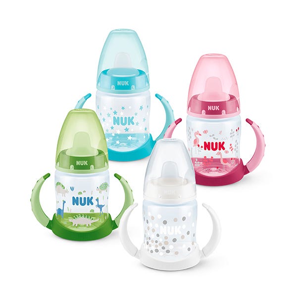 Con indicador de Control de Temperatura. Asas ergonómicas para una sujeción segura. Promueve el aprendizaje a beber en vaso. Cuello ancho para facilitar el llenado y la limpieza. NUK ANTI-COLIC AIR SYSTEM mejorado que ayuda a prevenir cólicos. Incluye anillo de rosca, disco de cierre, tapa protectora y boquilla suave y cómoda de Silicona. Sin sustancias nocivas ni olor. BPA Free.