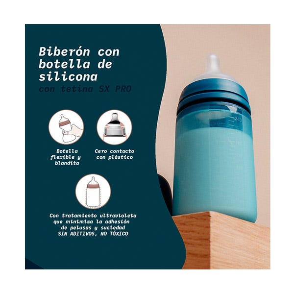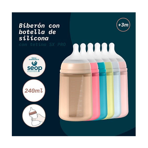 Biberón 240ml con botella de silicona blandita y suave. Biberón Suavinex con tetina Fisiológica Sx Pro de silicona de flujo medio.