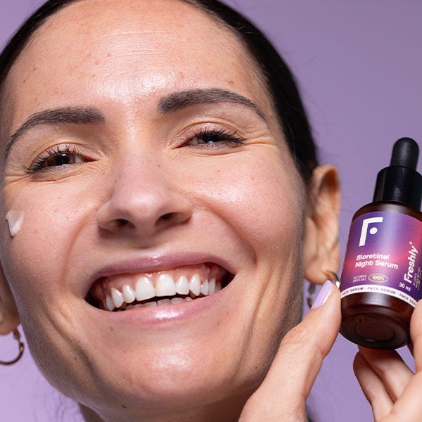 Quieres reducir arrugas y marcas de acné? Retinal Serum 100% natural. ¡11 veces más rápido que el retinol! Este retinoide de obtención biotecnológica es más potente y respetuoso con la piel.