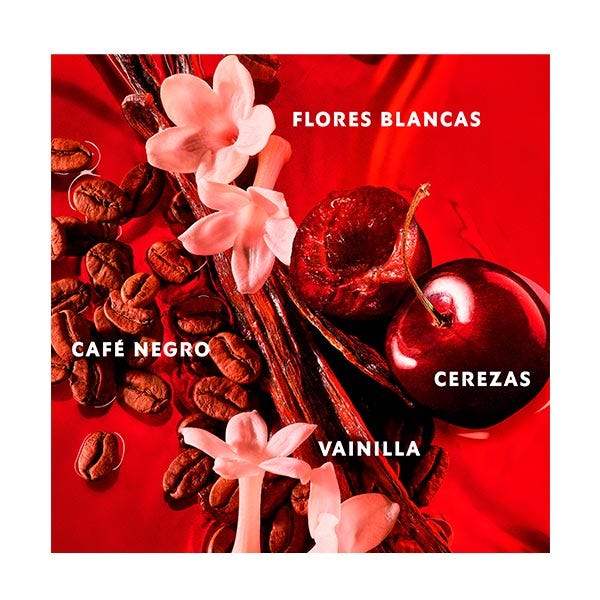 Esta fragancia mantiene la característica distintiva del reconocido Black Opium: el cautivador café negro, profundo, enigmático y refinado. La combinación de jazmín y flor de naranjo genera una explosión que añade luminosidad a la fragancia. El toque de cereza roja distingue a este perfume, oscilando entre una dulzura sensual y un matiz ácido.