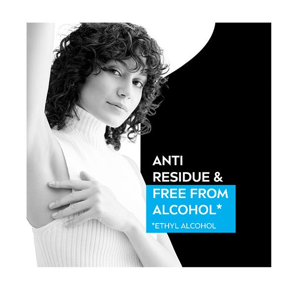2. PROTECCIÓN: Aplícate el desodorante anti-manchas Spray INVISIBLE For BLACK & WHITE Active a una distancia de 15cm de la piel de la axila. Deja secar completamente.