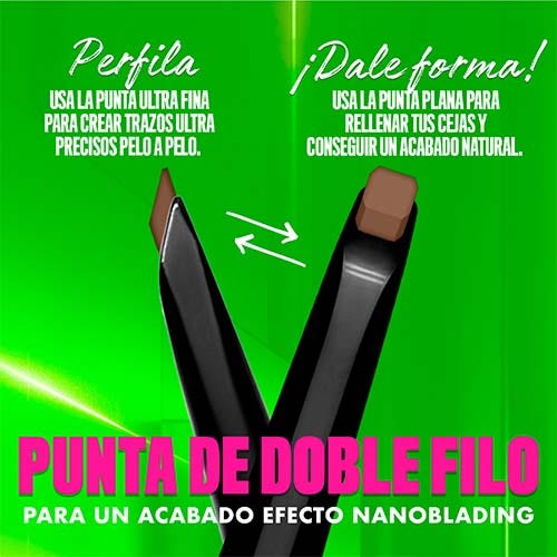 Nuestro primer lápiz de cejas de doble punta para unas cejas rellenas con precisión y sombreadas de forma natural. Sólo tienes que aplicarlo, darle la vuelta y sombrearlo para conseguir el aspecto de unas cejas nanoblading. Hasta 16 horas de duración.