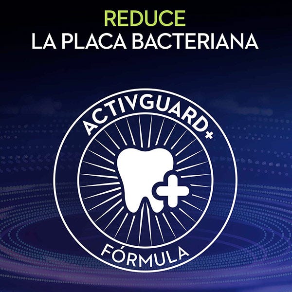 Su fórmula exclusiva ActivGuard proporciona una reducción de la placa bacteriana dos veces mayor que la pasta dentífrica con flúor normal y ayuda a aumentar la resistencia frente a futuros problemas de encías.