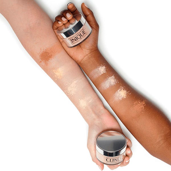 • Para conseguir un look impecable, utiliza esta técnica: Vierte una pequeña cantidad de polvos sueltos en la palma de la mano, introduce las yemas de los dedos en el polvo suelto y aplícalo a pequeños toques sobre la piel.