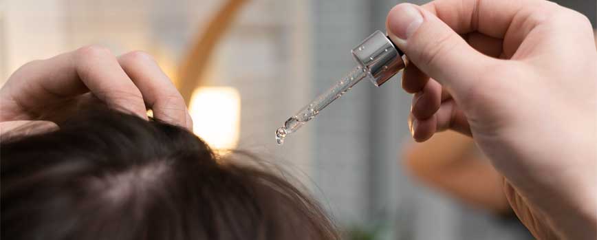 2. Pon unas gotas en las manos, calienta y aplica en el cuero cabelludo a toques.