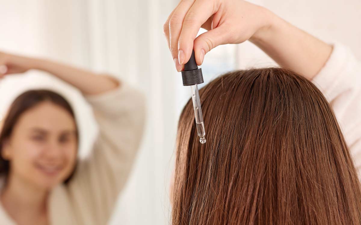 2. Pon unas gotas en las manos, calienta y aplica en el cuero cabelludo a toques.