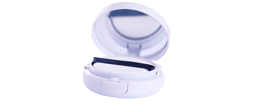 Es una base líquida en formato compacto impregnada en una esponja que libera el producto al presionar.