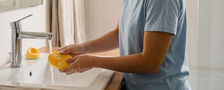 Después de cada uso, acláralo bien con agua y elimina restos de limpiador, maquillaje o grasa. Dejarlo limpio tras cada lavado es básico para que no acumule suciedad.