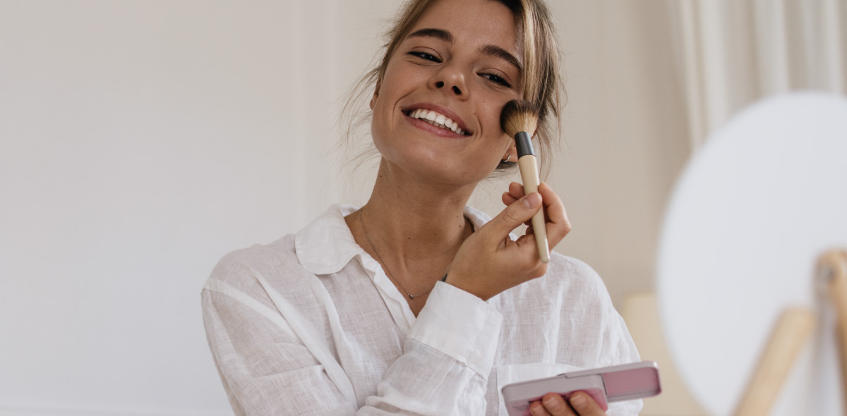 Con una brocha grande y suave, aplicándolo de manera ligera y difuminada. Es mejor aplicar poco a poco que excederse y tener que corregir.