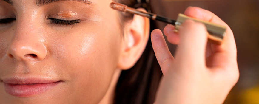 Las zonas clave son la zona alta del pómulo, la sien, el arco de Cupido y bajo el arco de la ceja, aplicando con moderación.