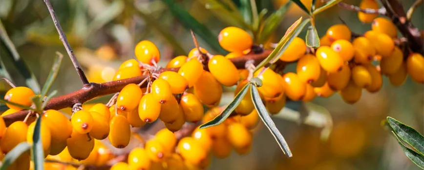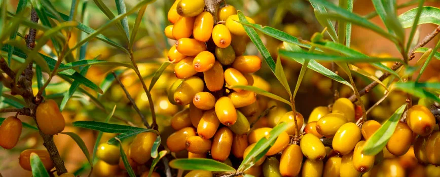 El espino amarillo es un arbusto con bayas ricas en vitaminas, ácidos grasos esenciales, antioxidantes, minerales, aminoácidos y fitoesteroles.