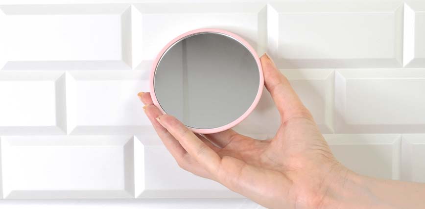 - Su anilla abatible, como si de un móvil se tratara, que facilita su uso en cualquier lugar. La anilla permite además poder apoyar el espejo en una mesa o superficie en alto y realizar el ritual de maquillaje o cuidado personal que se requiera.