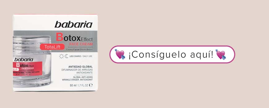 Un clásico al buscar la mejor crema con efecto bótox calidad precio, Botox Effect de Babaria es una crema facial pensada para aportar firmeza e hidratación, con ingredientes que ayudan a relajar la apariencia de las arrugas sin resultar agresivos. Su fórmula ha conseguido democratizar este efecto con un tripéptido «botox-like» muy efectivo para el uso diario.