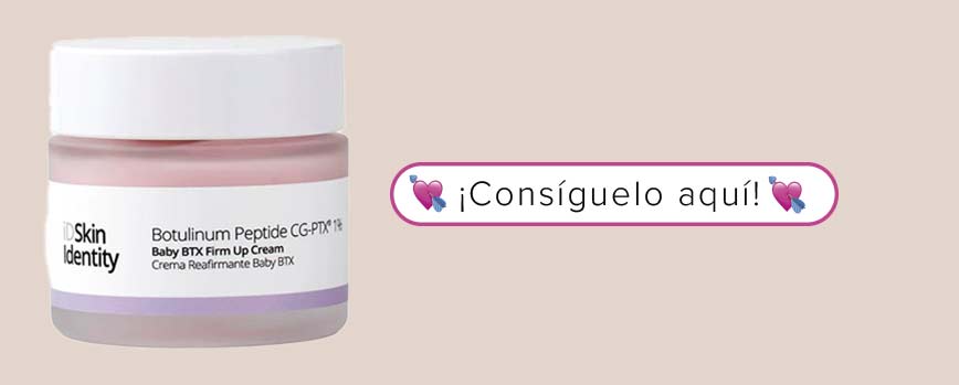 Completamos la selección con Botulinum Peptide Baby BTX, una crema reafirmante que incorpora botulinum peptide CG-PTX®, un ingrediente que ayuda a reducir líneas de expresión y mejorar la firmeza de la piel con un acabado natural, sin bloquear la expresividad del rostro.