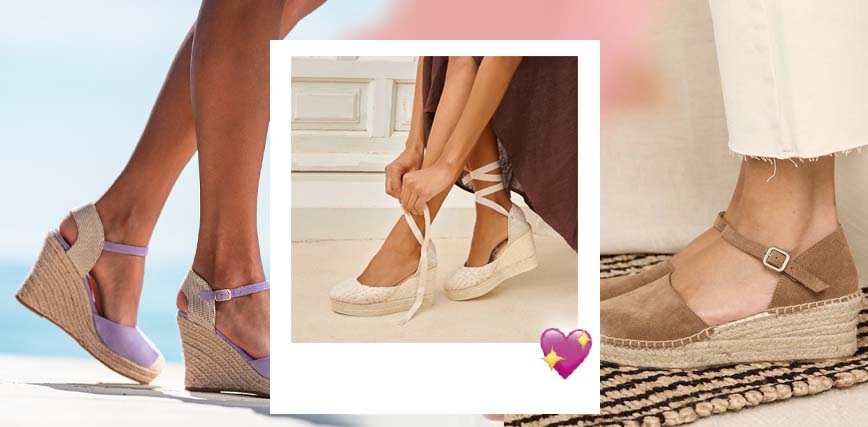 Además, considera el material: las alpargatas de cuña de esparto y con tela de algodón o lona son ideales para los días más cálidos, mientras que, si buscas algo más elegante, las de cuero o con detalles en satén pueden ser una gran opción.