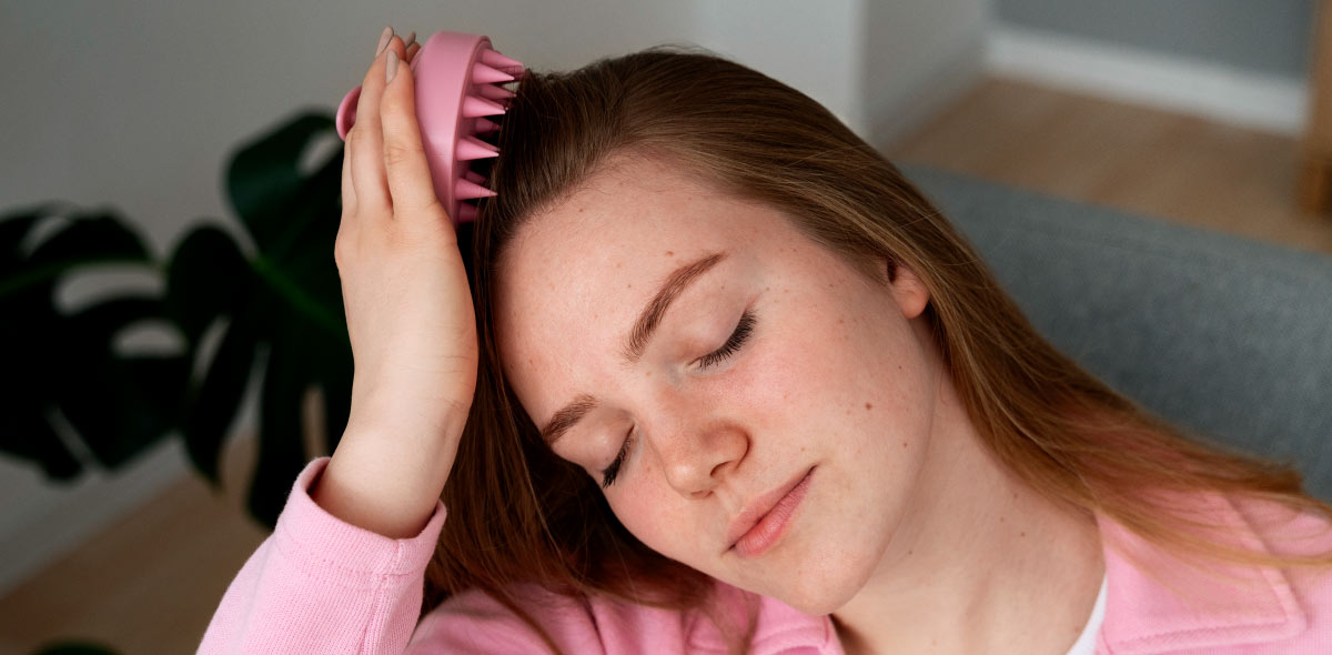 Puedes hacerlo con las yemas de los dedos, cepillos de silicona, aceites esenciales (como lavanda o romero) o incluso con rodillos de jade al estilo japonés. Lo importante es realizar movimientos circulares suaves sobre todo el cuero cabelludo.