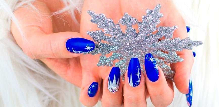 7 diseños de uñas de Navidad azules para sorprender estas fiestas