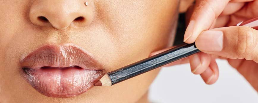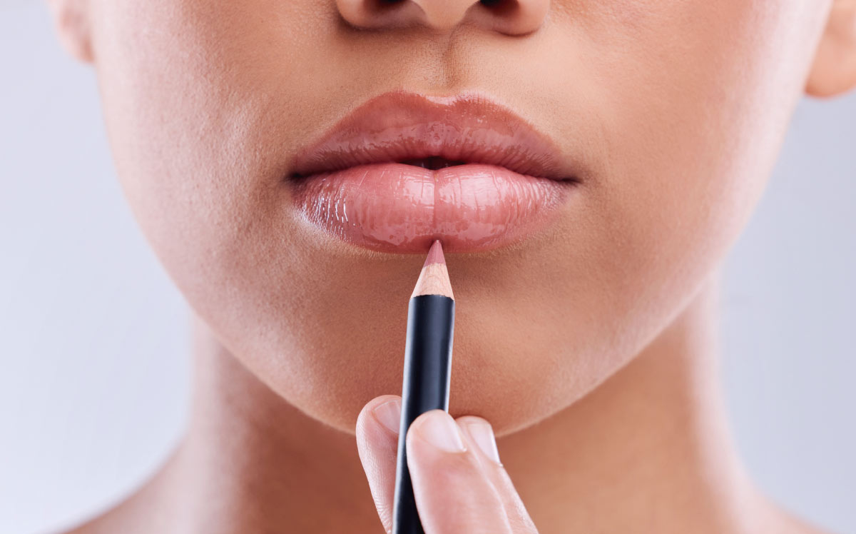 Con un overlip liner (perfilador de labios), dibuja el contorno justo por encima de la línea natural de tus labios. La clave está en no exagerar: el trazo debe ser sutil, especialmente en el arco de Cupido y en el centro del labio inferior.