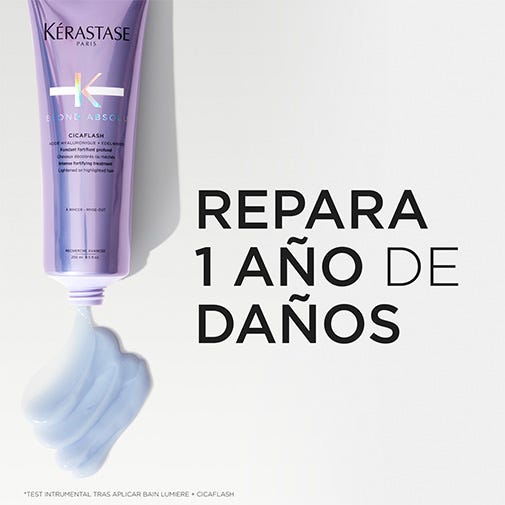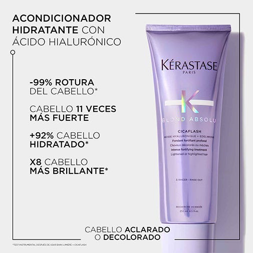 Blond Absolu Cicaflash de Kérastase es un acondicionador fortificante intenso que combina la potencia reparadora de una mascarilla con el acabado ligero de un acondicionador.