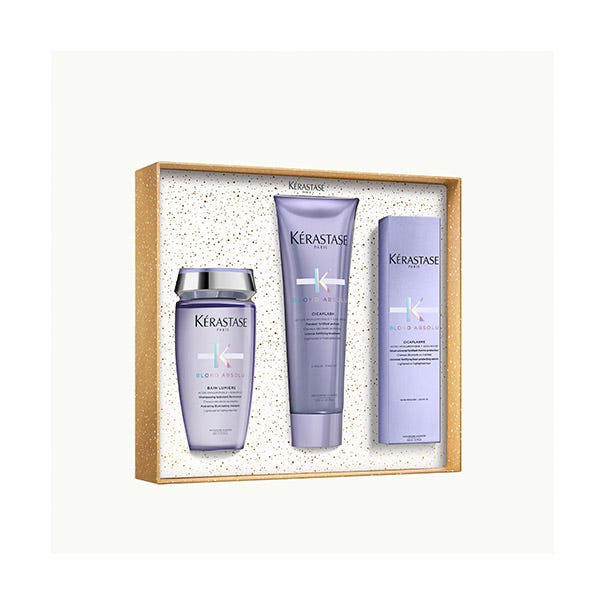 Estas fiestas, descubre la magia del invierno parisino y sumérgete en el lujoso mundo de Kérastase con nuestros sets navideños de edición limitada. ¿Para quién está pensado este cofre? ¿Para quién está pensado este cofre? ¿Buscas el regalo perfecto para alguien especial que quiere lucir un cabello rubio impactante? Nuestro trío revitalizante es el secreto para lograrlo. Con una potente combinación de flor de edelweiss y ácido hialurónico, hidrata en profundidad, realza el color y reduce la rotura.