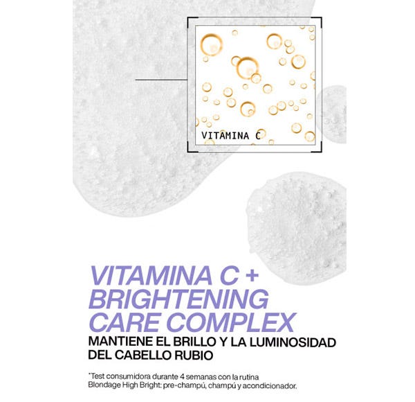 Mantiene el brillo y la luminosidad del cabello rubio gracias al poder antioxidante de la Vitamina C. Luminosidad, brillo, acondiciona y elimina los agentes externos a través de su formulación con Vitamina C