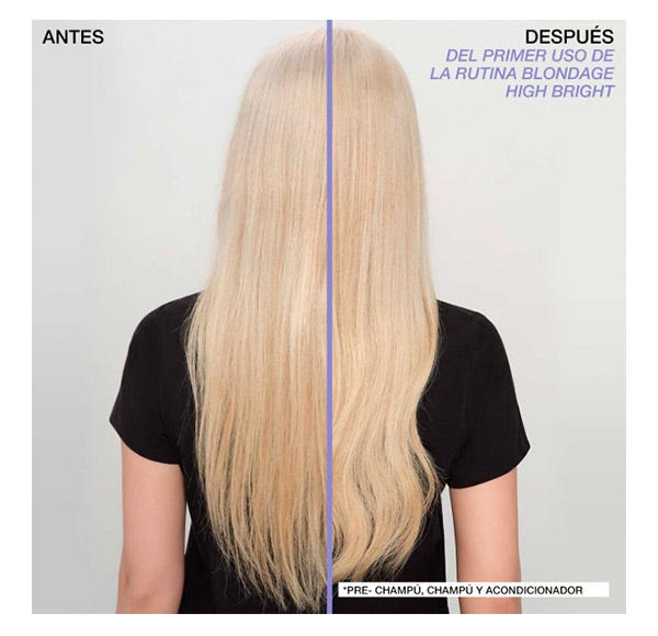 Pre-champú para cabello rubio apagado y sin brillo formulado con Vitamina C que nos ayuda a eliminar los agentes externos del cabello y mantener así un rubio luminoso y brillante