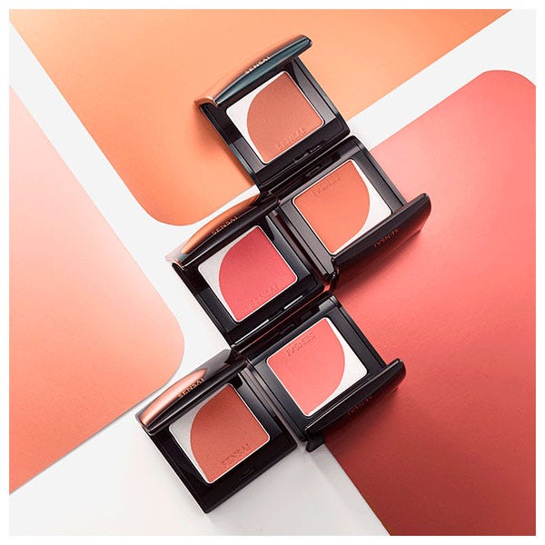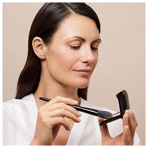 Este colorete se caracteriza por su dueto de polvos sedosos y translúcidos: un tono de color que aporta un rubor natural y uniforme, y un tono blanco perlado que permite modular la intensidad del brillo. Juntos, ofrecen un acabado radiante.