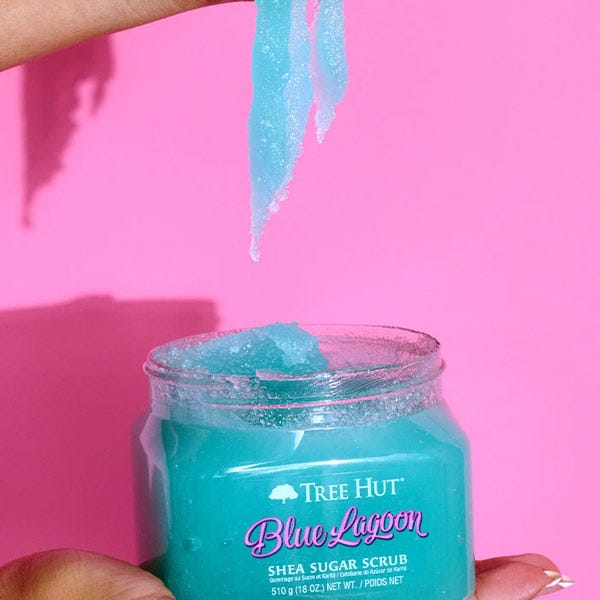 ¡Revela una piel radiante con el exfoliante corporal Tree Hut Sugar en el tranquilo aroma marino de Blue Lagoon!