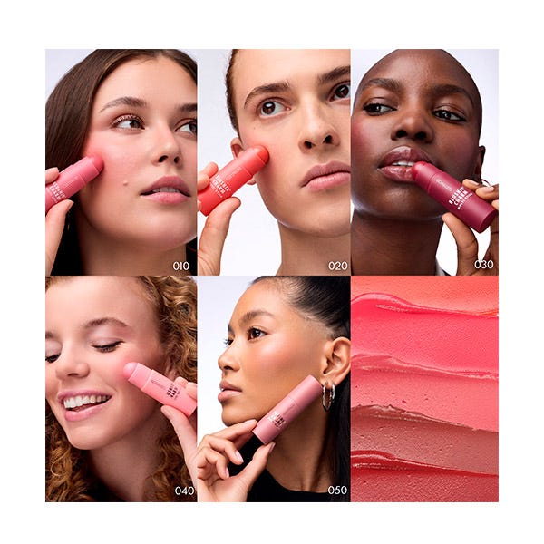Solo tienes que deslizar el stick directamente sobre las mejillas o los labios y difumina con una brocha o con los dedos. La textura cremosa se desliza suavemente sobre la piel y se funde al instante. Para una aplicación más precisa, también puedes aplicar el colorete en una brocha primero y luego difuminarlo en las mejillas.