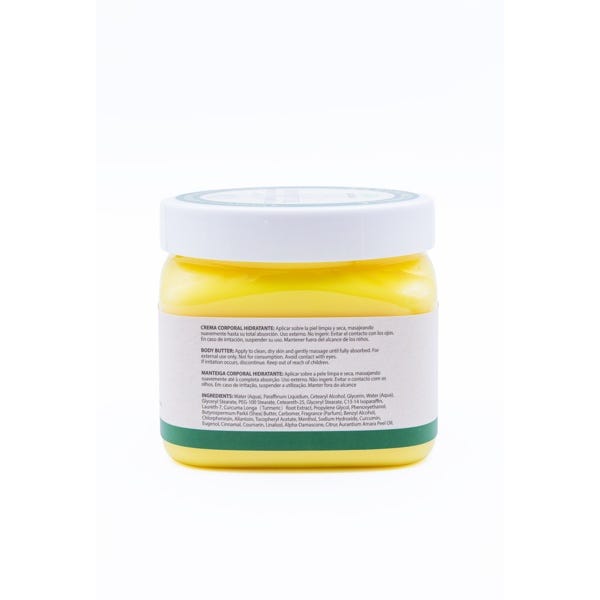 Activos principales: • Cúrcuma: antioxidante natural que contribuye a calmar e iluminar la piel. • Manteca de Karité: aporta nutrición profunda y ayuda a mantener la hidratación de forma duradera. • Vitamina E y Alantoína: ayudan a reforzar la barrera cutánea y mejorar la suavidad.