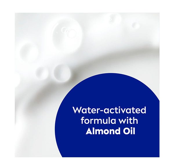 Sus exclusivos ingredientes humectantes, enriquecidos con Aceite de Almendras, se activan al entrar en contacto con el agua logrando que la piel mojada los absorba inmediatamente.