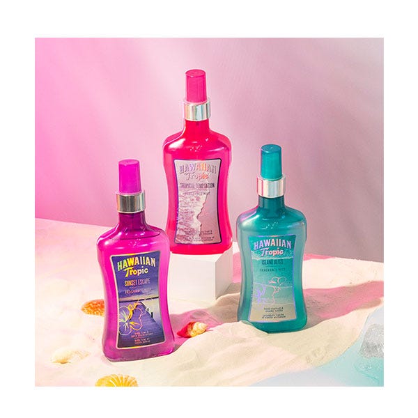 Hawaiian Tropic Sunset Escape Body Mist. Transpórtate a un paraíso de atardeceres nacarados con nuestra exótica colección de body mists.