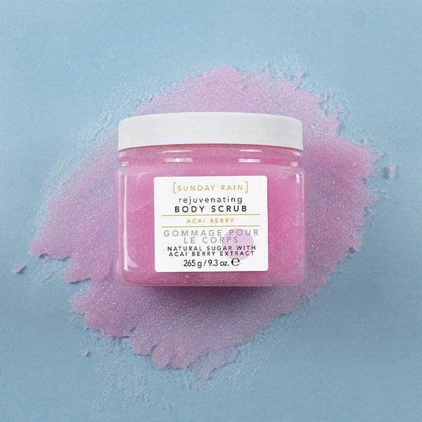 Haz un ligero masaje para suavizar la piel con este exfoliante de azúcar infundido con extracto de bayas de acai.