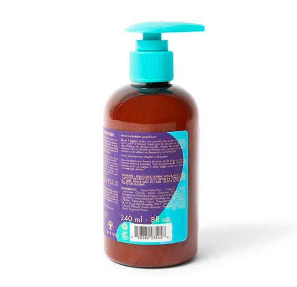 Para los niños con cabello muy grueso, muy largo o para cabello propenso a enredarse, se recomienda desenredar el cabello con un peine de dientes anchos antes de enjuagar el Avocado Shea Cowash del cabello.