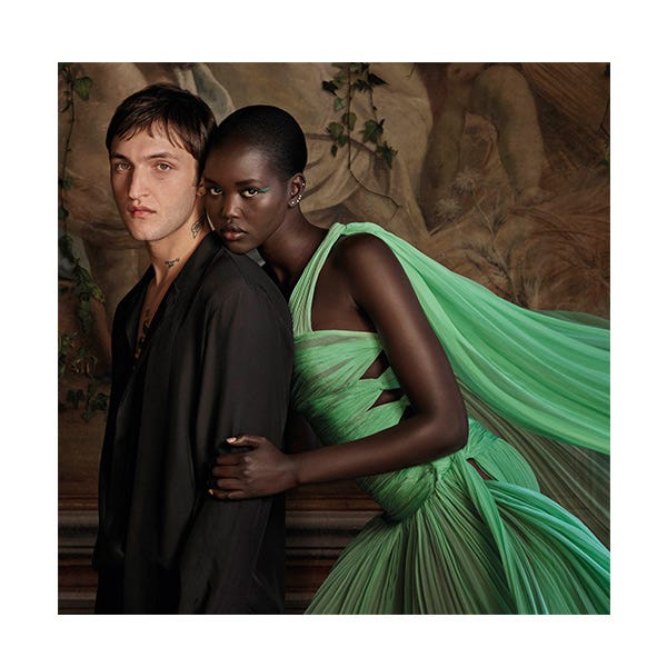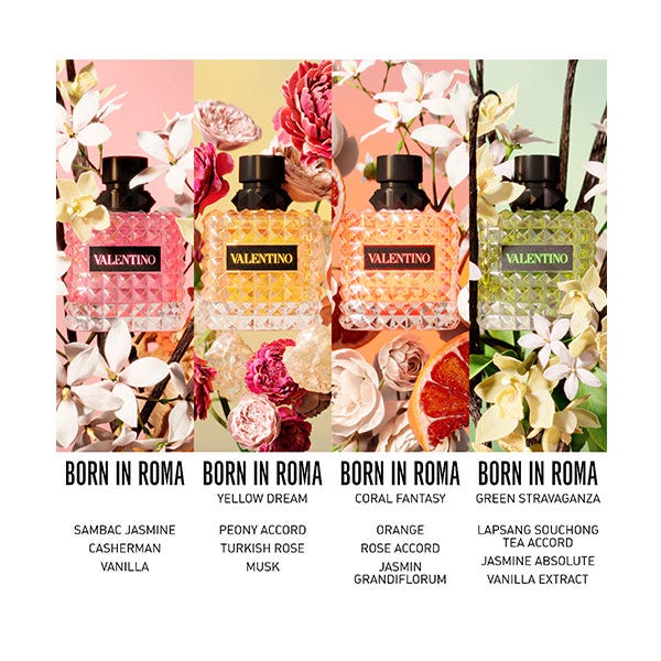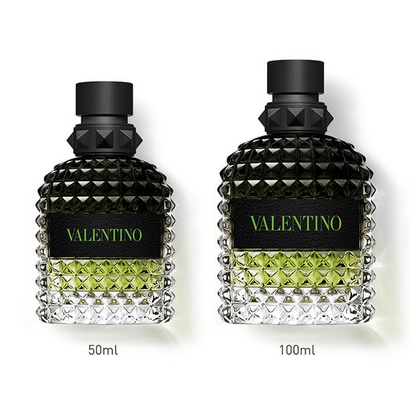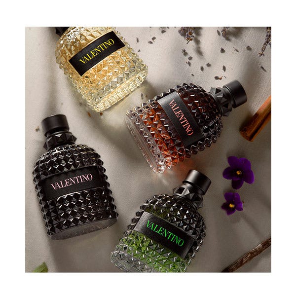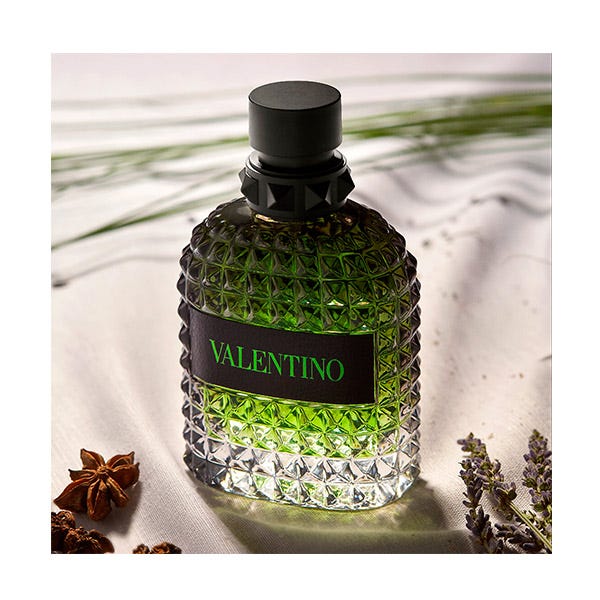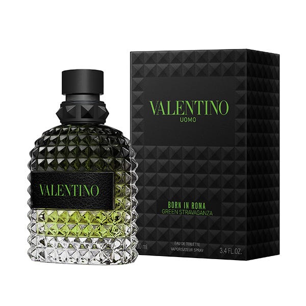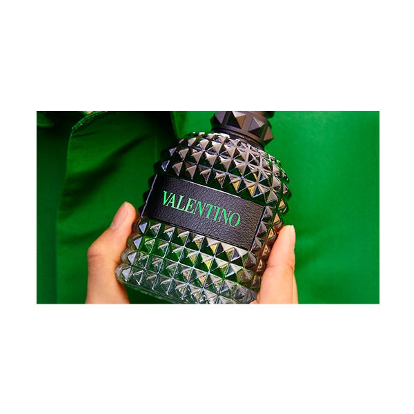 El frasco de Born in Roma Green Stravaganza rinde homenaje al icónico Rockstud de Valentino, con un diseño piramidal y vanguardista inspirado en la arquitectura romana, una firma distintiva de la Maison Valentino. La modernidad del frasco se realza con el contraste de cuero negro y verde vibrante. En Valentino, el verde es atrevido y excesivo, apasionado y extravagante, ¡justo como usted!