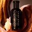 El frasco BOSS Bottled, inmediatamente reconocible, está lacado en un tono negro ahumado y coronado con un tapón negro cepillado para esta nueva y atrevida versión. El frasco y su embalaje exterior negro mate presentan un acabado característico de la marca en oro hielo a la imagen de esta poderosa y audaz fragancia para hombres que viven como un BOSS.