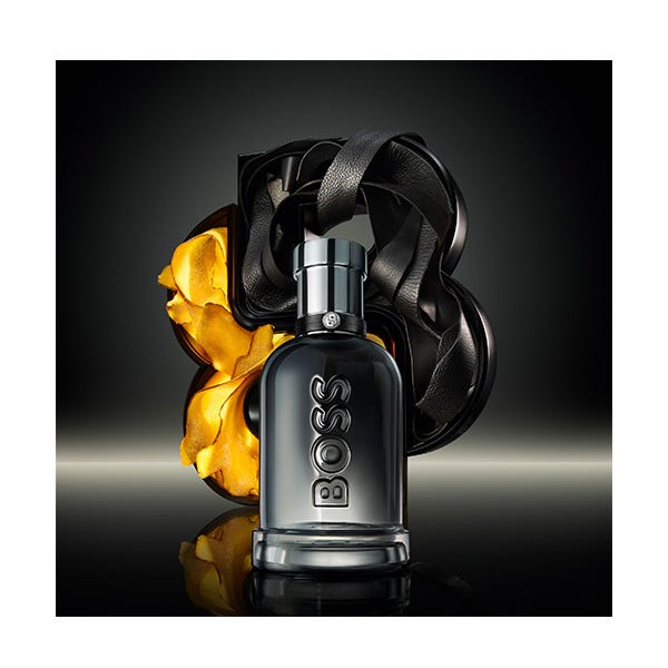 Reinventando un diseño icónico, la botella BOSS Bottled Beyond destaca en cristal lacado negro, complementado con un ribete de doble piel y un tapón gris metalizado. Un radiante degradado, del negro al gris ahumado, completa su estética masculina. El monograma grabado de la Doble B confirma la dualidad de la fragrancia.