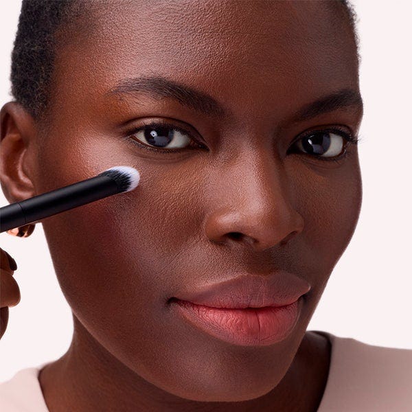 Aplica pequeñas cantidades de corrector debajo de los ojos y luego utiliza la brocha en ángulo para difuminar desde el ángulo interno hacia afuera con trazos suaves. Su forma plana y precisa sigue perfectamente los contornos del contorno de ojos, garantizando una aplicación uniforme y un acabado impecable y natural, sin pliegues ni marcas.