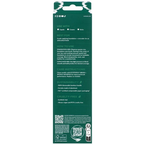 La brocha de maquillaje de doble punta EcoTools Blend + Conceal cuenta con dos lados para ayudarte a lograr la base perfecta.