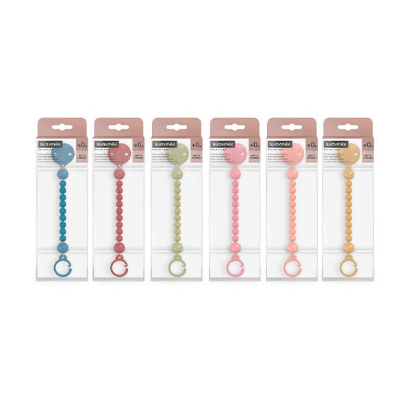 Broche combinable con los nuevos modelos de chupetes, portachupetes y biberones de la colección Colour Essence Suavinex.