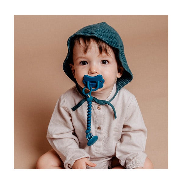 Cadena para chupetes suave y flexible de silicona, en una única pieza de silicona para una mayor seguridad.