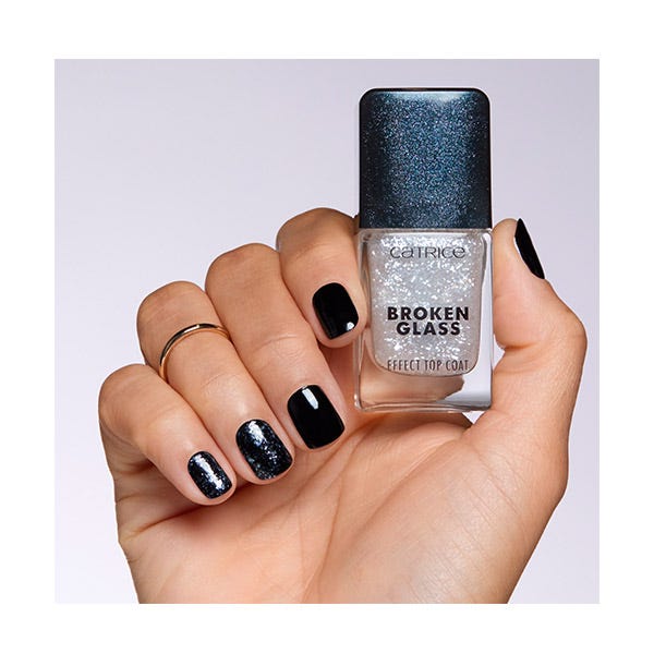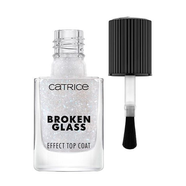 El top coat Broken Glass Effect 050 Sparkling Reflection de Catrice es una increíble incorporación a tu manicura. Diseñado para aplicarse sobre cualquier esmalte de uñas normal. Este top coat contiene grandes partículas de purpurina de plata blanca que crean la ilusión del vidrio roto, ofreciendo una textura atrevida y un llamativo efecto 3D. Transforma cualquier esmalte de uñas con esta fórmula única y transparente que añade profundidad y dimensión, proporcionando a tus uñas un aspecto sofisticado.