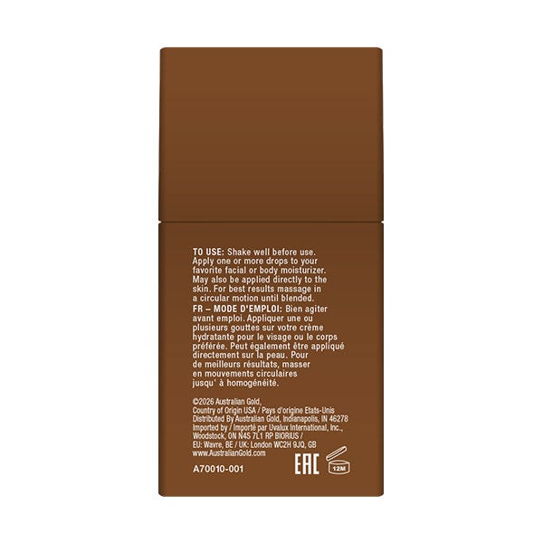 Disfruta de tu brillo veraniego con las Gotas Bronceadoras de Australian Gold®. Mima tu piel con este suero rico en antioxidantes que hidrata y nutre en profundidad, dejándola con un hermoso brillo cálido y bronceado.