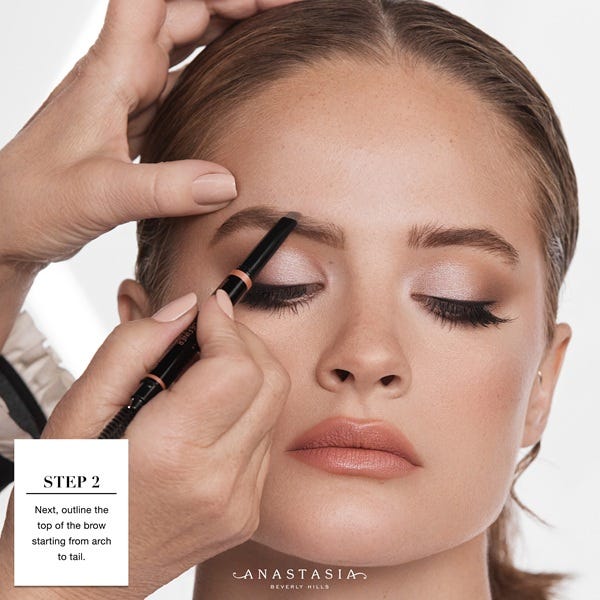• Comienza exponiendo solo una pequeña cantidad del producto (aproximadamente 2-3 milímetros), que permite un control máximo del lápiz y evita la sobreextensión al aplicar el producto. Recuerda que todos los productos de Anastasia Beverly Hills son altamente pigmentados, por lo que se requiere poca presión.