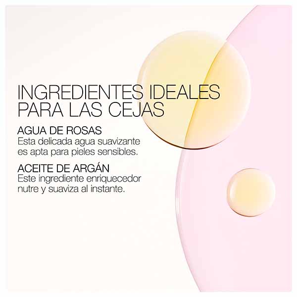 Enriquecido con aceite de argán y agua de rosas calmante, ayuda a suavizar y acondicionar al instante las cejas con una definición perfecta