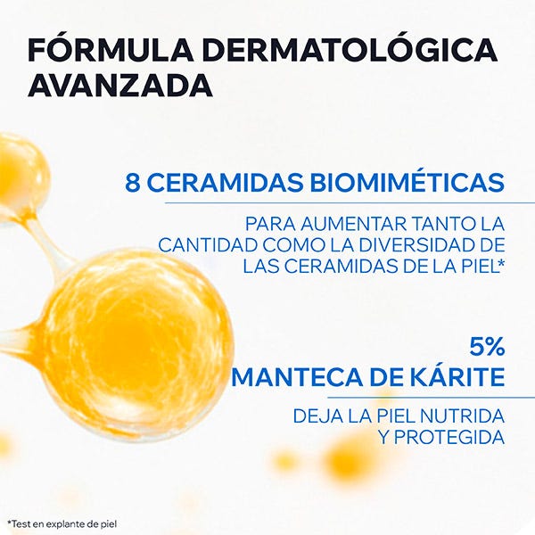 INGREDIENTES: 8 CERAMIDAS BIOMIMÉTICAS + 5 % MANTECA DE KARITÉ.
