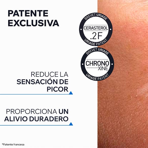 Actúa sobre la barrera inmunitaria gracias a dos patentes exclusivas de Laboratoires Dermatológicos de Uriage: TLR2-REGUL y CHRONOXINE, que ayudan a limitar el picor y proporcionan un alivio duradero.