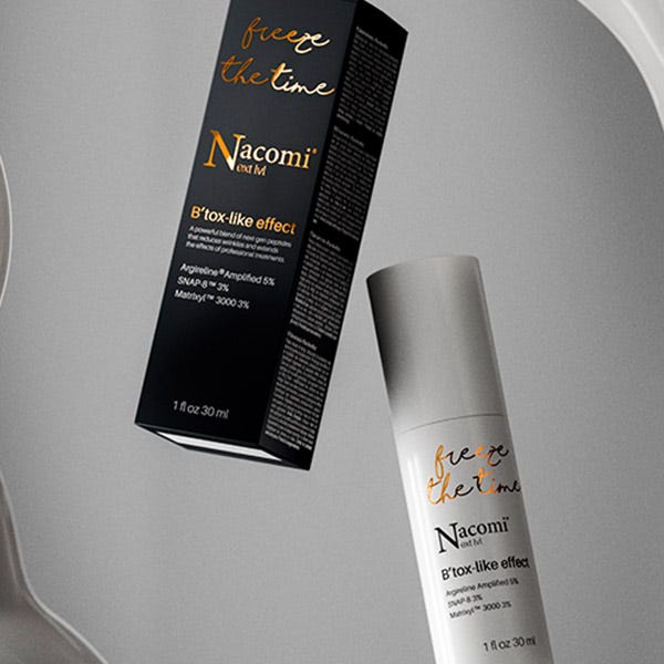 ¡Una atención innovadora que funciona de dos maneras! Nacomi Next Level B`tox-like effect es un suero peptídico antienvejecimiento que tiene efectos tanto preventivos como fortalecedores. Los péptidos avanzados de nueva generación que contiene no sólo demuestran efectos antienvejecimiento intensivos, sino que también prolongan los efectos de los tratamientos profesionales, como la toxina botulínica, ¡hasta 8 semanas! Suavizan eficazmente las arrugas faciales, tensan la piel y recuperan su firmeza juvenil. ¡No esperes que el tiempo deje su huella: elige un cuidado que siempre estará un paso por delante de las arrugas! La juventud no es cuestión de tiempo, sino de elegir la atención adecuada.