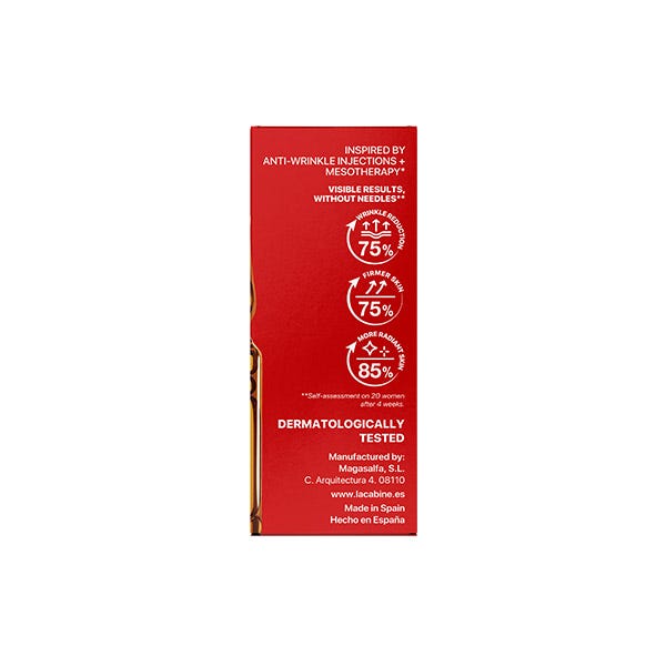 Ampolla facial antiarrugas de alta precisión, con 7 péptidos tensores y un cóctel de vitaminas.